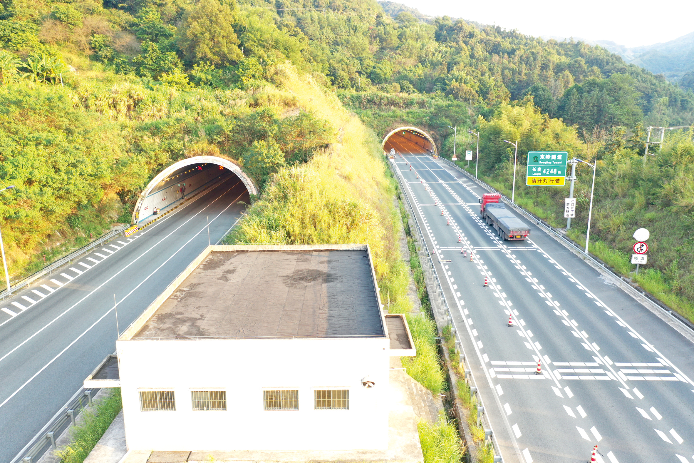 2015年12月建成通车,为汕头至湛江高速公路揭西大溪至博罗石坝段的控制性工程。左线隧道长4248m,右线隧道长4244m,双向六车道,设计时速120 km/h。隧道洞口美观大方,与周边环境融为一体。 结合项目地质条件复杂、结构断面大、工期紧等特点,设计中积极利用新技术、新工艺,成功应用复杂地质条件隧道开挖综合技术,确保工程建设与运营安全。