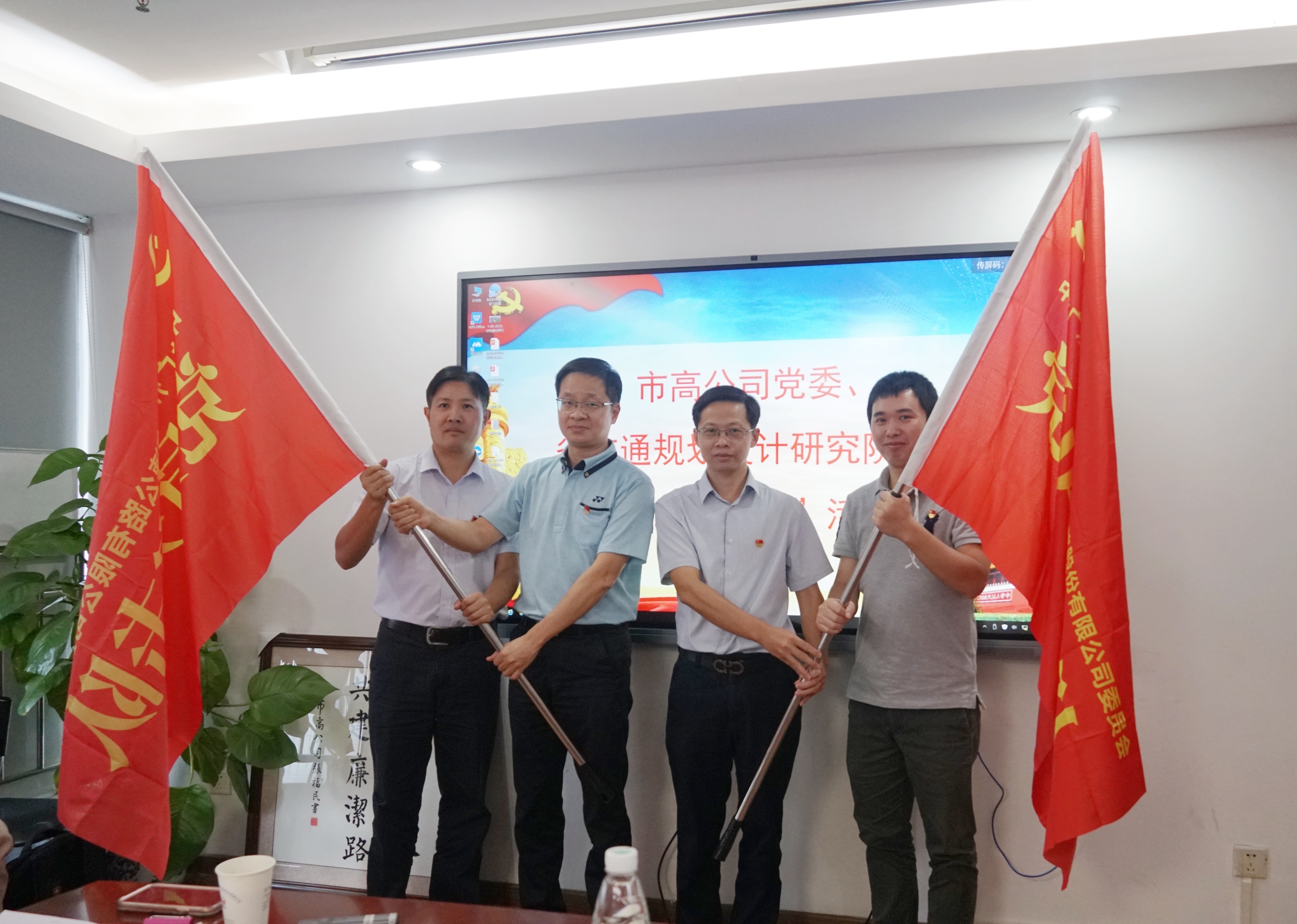 此次“红联共建”活动依托增天高速项目开展,通过“党建搭台、业务唱戏”的模式,使得党建与项目设计工作深度融合、相互促进。会上,我司增天高速项目负责人朱添丰介绍项目设计工作的推进情况和后续计划,市高公司增天高速项目工作组组长卢辉提出项目设计工作“基于增天、高于增天”的重要设想,列出项目设计紧迫性、前瞻性、创新性等方面的难题清单以及党员突击队攻关计划。双方就外业调查规划、材料调查、图纸审核等工作展开交流,并围绕如何通过党建引领、党员攻坚进行提质增效而开展深入探讨,最终达成一致共识。市高公司党委书记温志斌和我司党委副书记陈贤文在现场为双方党员突击队进行了授旗。