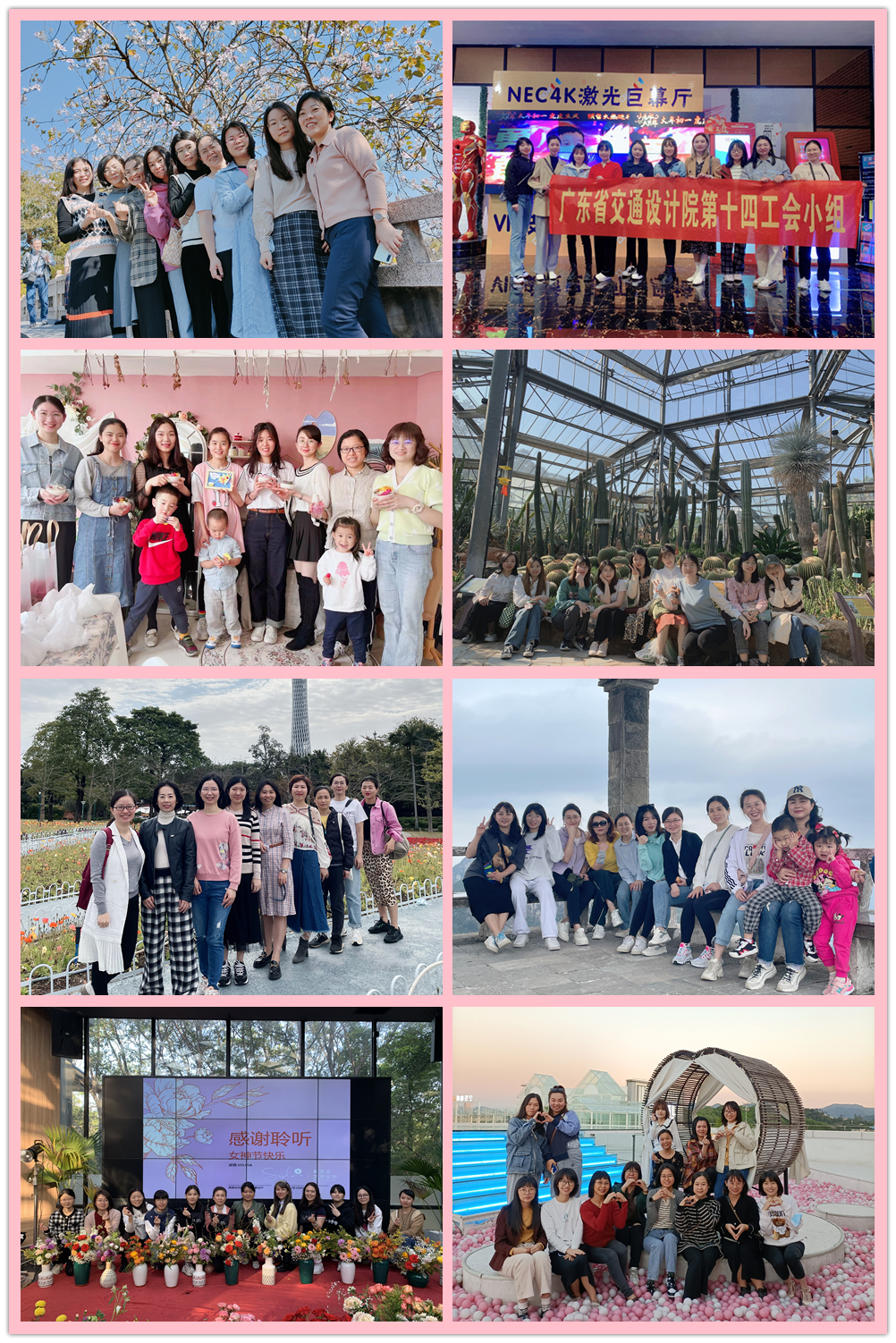 有的工会小组为女职工们精心安排了踏青赏花、登山徒步、手工体验、集体观影等多姿多彩的活动,增添了欢乐的节日气氛,传递了温暖的团队情谊。
