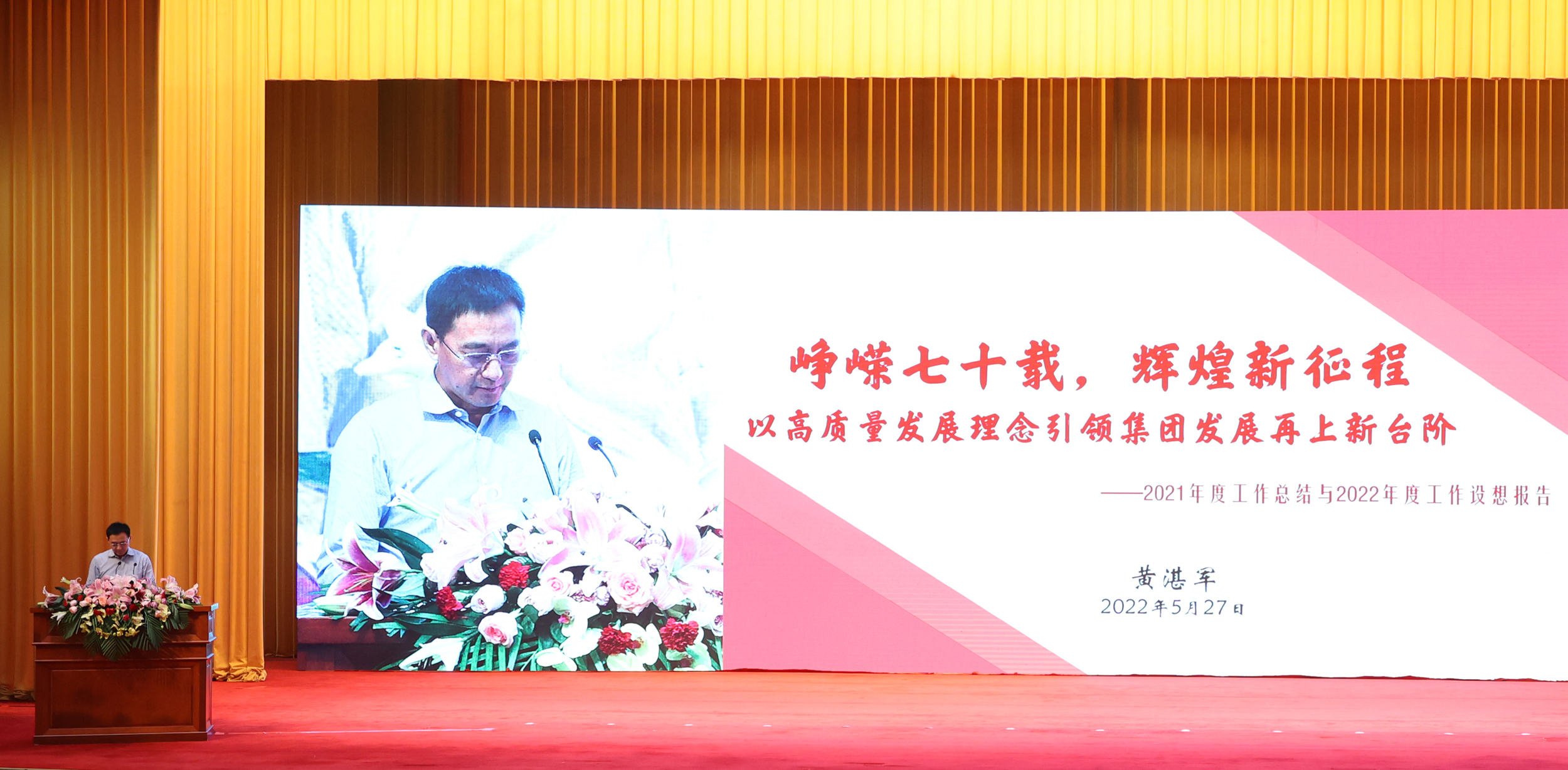 会上,集团总经理黄湛军作了题为《峥嵘七十载,辉煌新征程,以高质量发展理念引领集团发展再上新台阶》的工作总结报告,对2021年各项工作进行总结,并对2022年的工作做出整体部署。