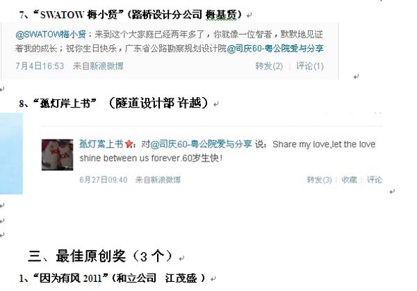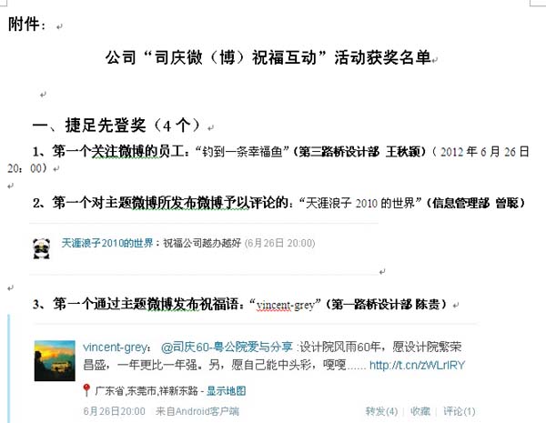 公司“司庆微(博)祝福互动”活动获奖名单揭晓