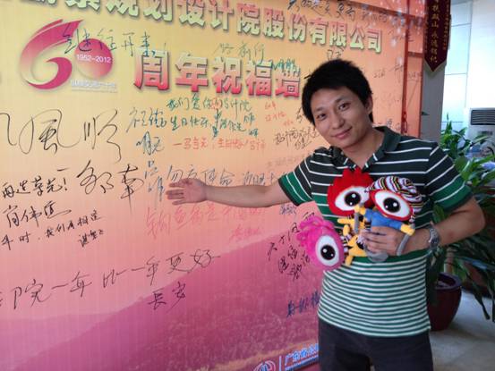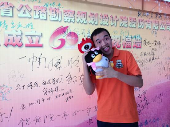 9月21日上午,公司在一号楼大堂举行了一场别开生面的颁奖仪式。李琴总经理助理为“司庆微(博)祝福互动”活动的获奖网友颁发纪念品。仪式上,网友们在公司“祝福墙”上书写祝福,并合影留念。 本次活动的纪念品是新浪和腾讯微博的限量公仔,网友们见了很心动,抱着可爱的公仔纷纷在祝福墙前秀上笑脸照。