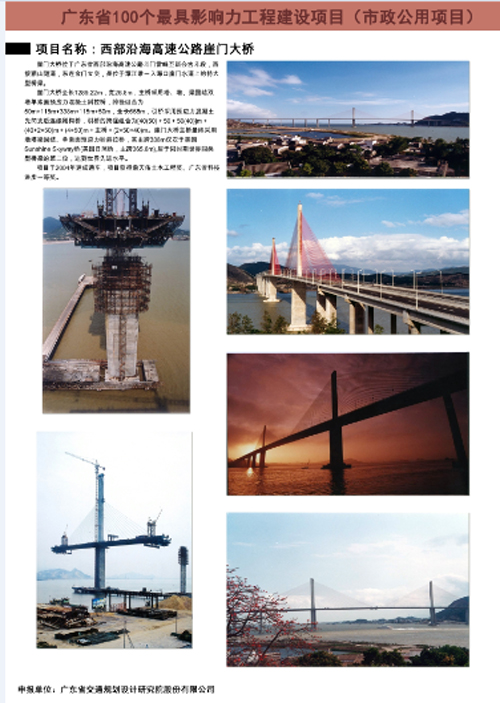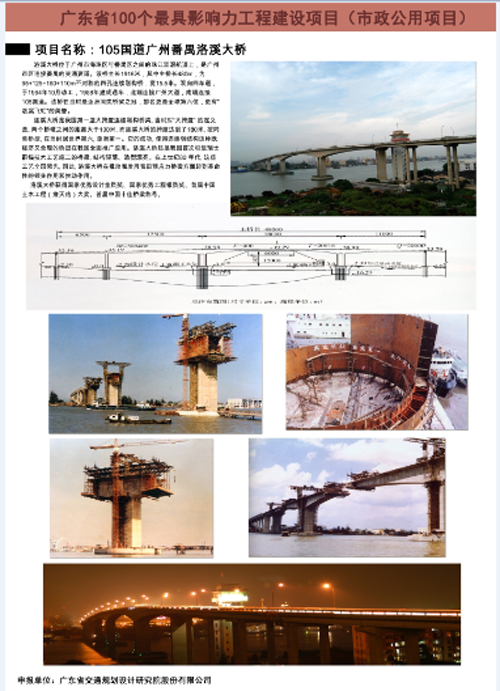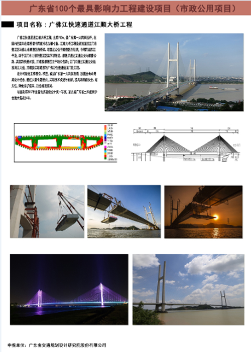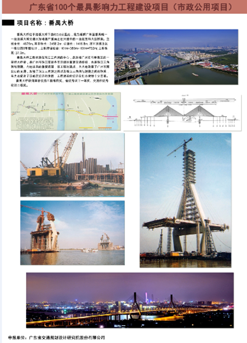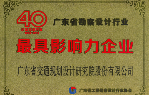 为庆祝改革开放40周年,广东省工程勘察设计行业协会组织开展了广东省勘察设计行业表彰评选活动。其中,共有21家单位荣获改革开放40年广东省勘察设计行业最具影响力企业称号,我公司与广东省建筑设计研究院等知名企业榜上有名。 此外,由公司设计的“105国道广州番禺洛溪大桥工程”、“番禺大桥工程”、“广佛江快速通道江顺大桥工程”和“广东省西部沿海高速公路崖门大桥工程”荣获广东省勘察设计行业100个最具影响力工程建设项目称号。 今后,公司将继续努力、精益求精、不断创新,为推动广东省工程勘察设计行业发展做出更大的贡献。