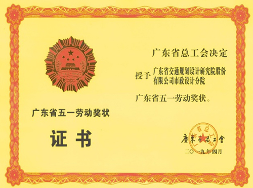 热烈祝贺我公司市政设计分院荣获 “广东省五一劳动奖状”