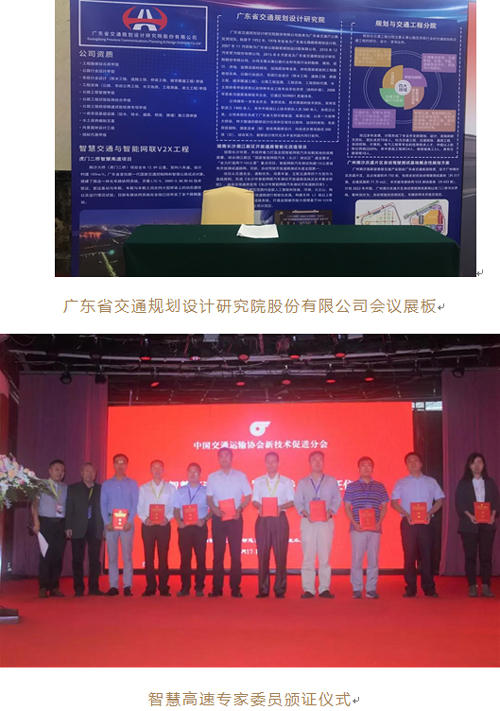 公司作为协办单位参与了此次研讨会。会议决议同意公司规划与交通工程分院总工程师曾盛以及机电与智慧交通所所长关小杰加入中国交通运输协会新技术促进分会“智慧高速专家组”(其中,曾盛担任分会副主任委员,关小杰担任分会委员),并隆重颁发证书。
