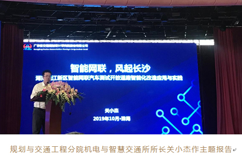 此次研讨会上,关小杰代表公司作了《智能网联,风起长沙——湖南湘江新区智能网联汽车测试开放道路智能化改造应用与实践》的专题报告。报告对自动驾驶的测试现状、湖南湘江新区开放道路选线方案、V2X方案设计等方面进行了介绍,引起了与会专家领导的高度关注和认可。