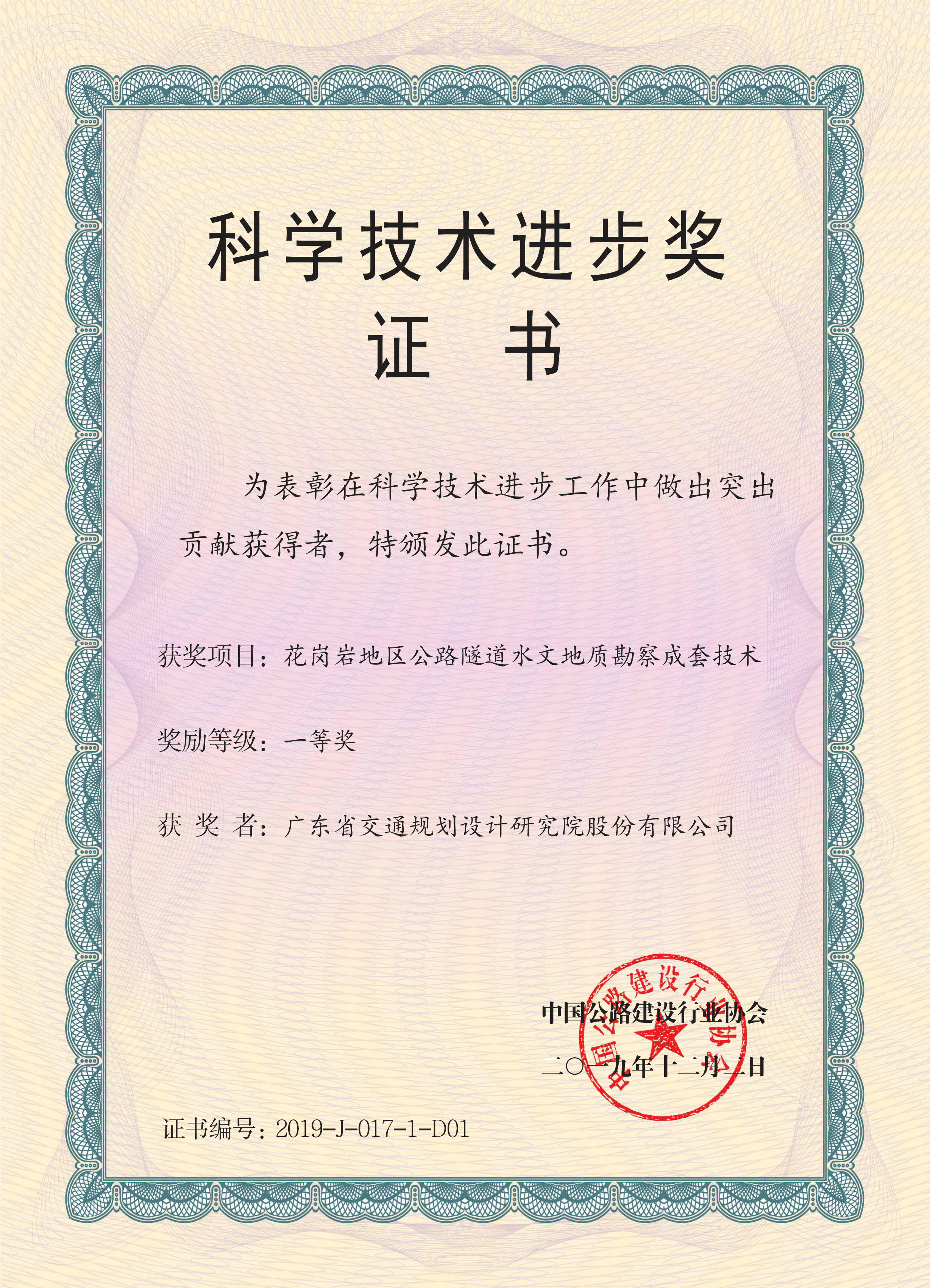 近日,公司在“2019年度中国公路建设行业协会科学技术进步奖”(部级奖励)评选中喜创佳绩。“大跨径混合梁斜拉桥设计关键技术研究”等三个项目分获“科学技术进步奖”一等奖、三等奖,具体获奖及承担部门情况如下: