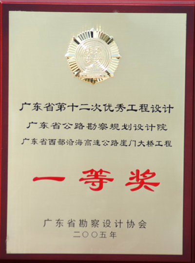 在广东省勘察设计协会组织的广东省第十次优秀工程勘察、第十二次优秀工程设计项目评审活动中,我院有六个工程项目获奖,其中两个项目获优秀工程设计一等奖、一个项目获三等奖;一个项目获优秀工程勘察一等奖、两个项目获二等奖,具体获奖项目如下: 优秀工程设计一等奖: 广东省西部沿海高速公路崖门大桥工程 汕汾高速公路 优秀工程勘察一等奖: 汕梅高速公路北斗至清潭段 优秀工程勘察二等奖: 广东省西部沿海高速公路台山大担至北陡段镇海湾大桥 同三国道主干线粤境高速公路汕头至汾水关段 优秀工程设计三等奖: 番禺北斗大桥
